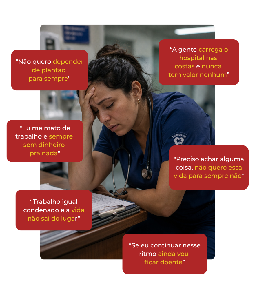 ❌ Continuar vivendo de plantão em plantão, sempre cansado e sem tempo pra nada