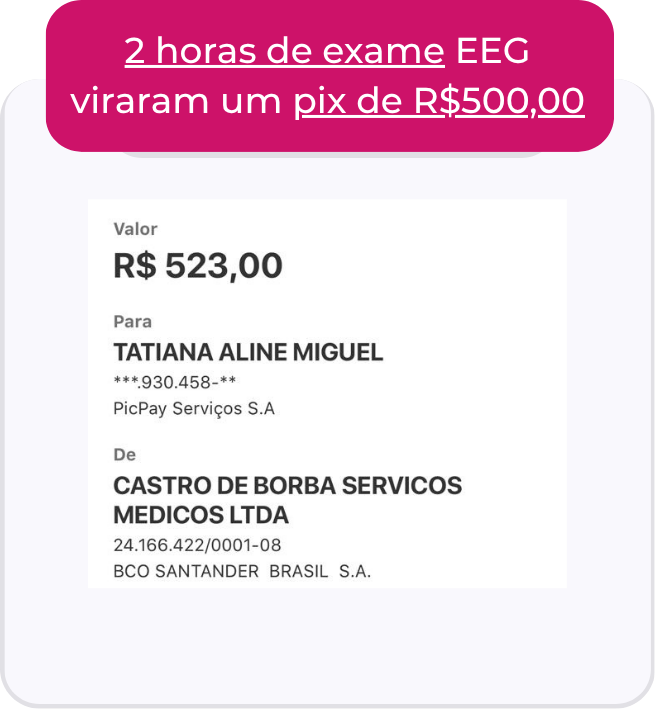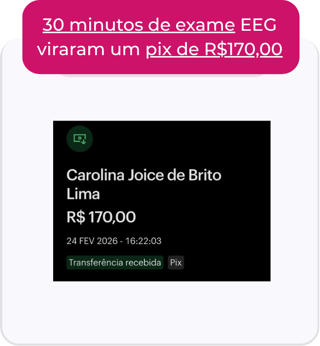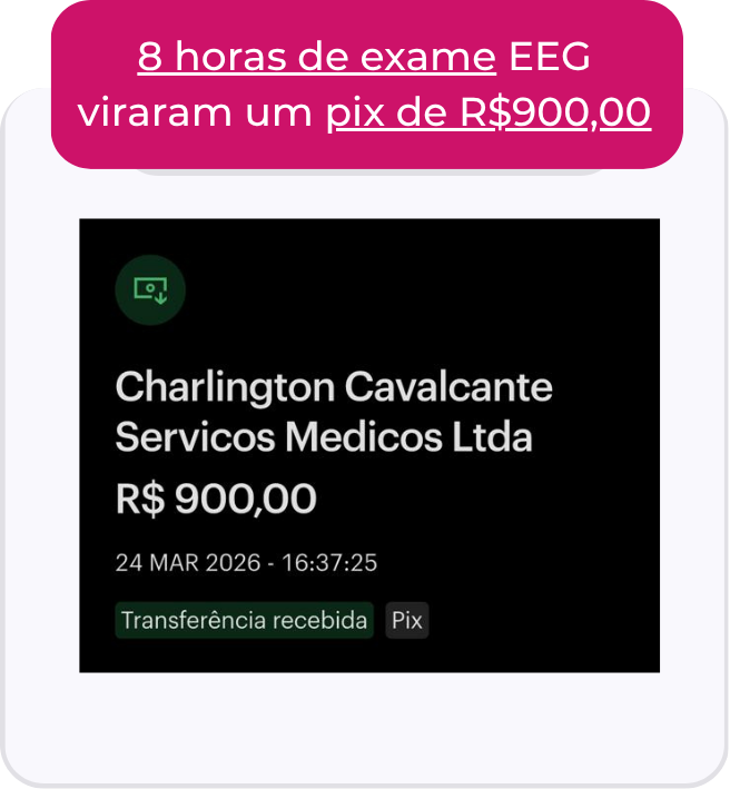 E se dedica a exames particulares em residências e hospitais com foco pediátrico, sendo sua maior demanda, crianças com espectro autista.
